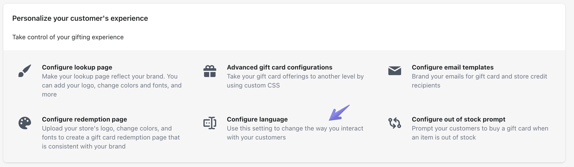 Scroll down to the section Bulk gift card purchase page. Here you'll have many options to change pretty much any text related with this feature. Make sure to Save your changes when you're done editing.