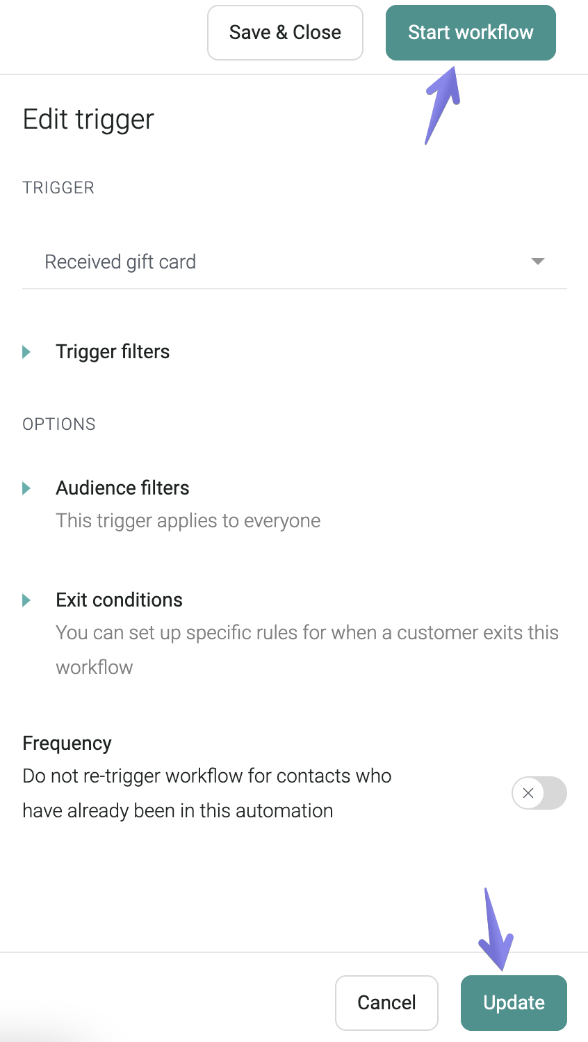 On the next screen, select Received gift card as your Trigger: