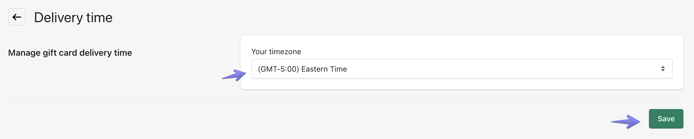 Note: if you are on the Premium or Enterprise plan, you have the option to choose the delivery time for gift cards sent on a future date. See Setting the time when a scheduled Gift Card will be delivered.