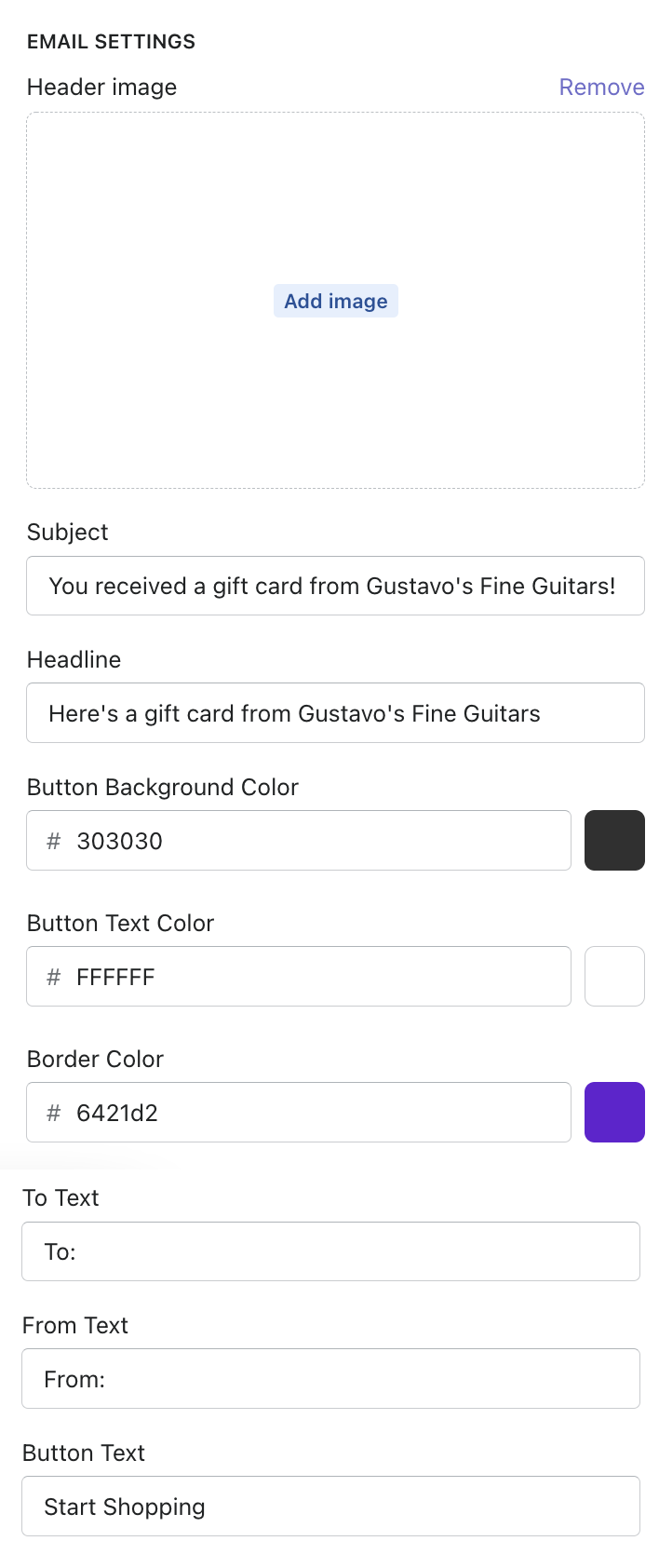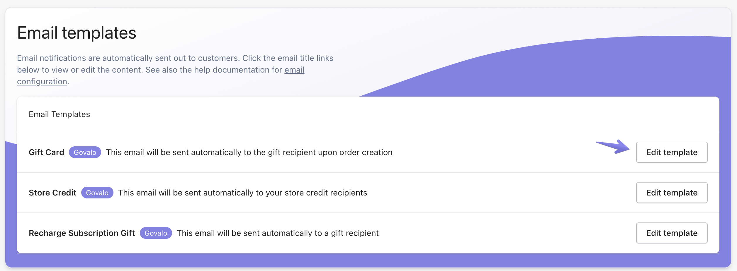 Note: this article applies to stores using Govalo as their email source. If you use a 3rd party app such as Klaviyo for sending gift card emails, the template must be configured directly in that app.
