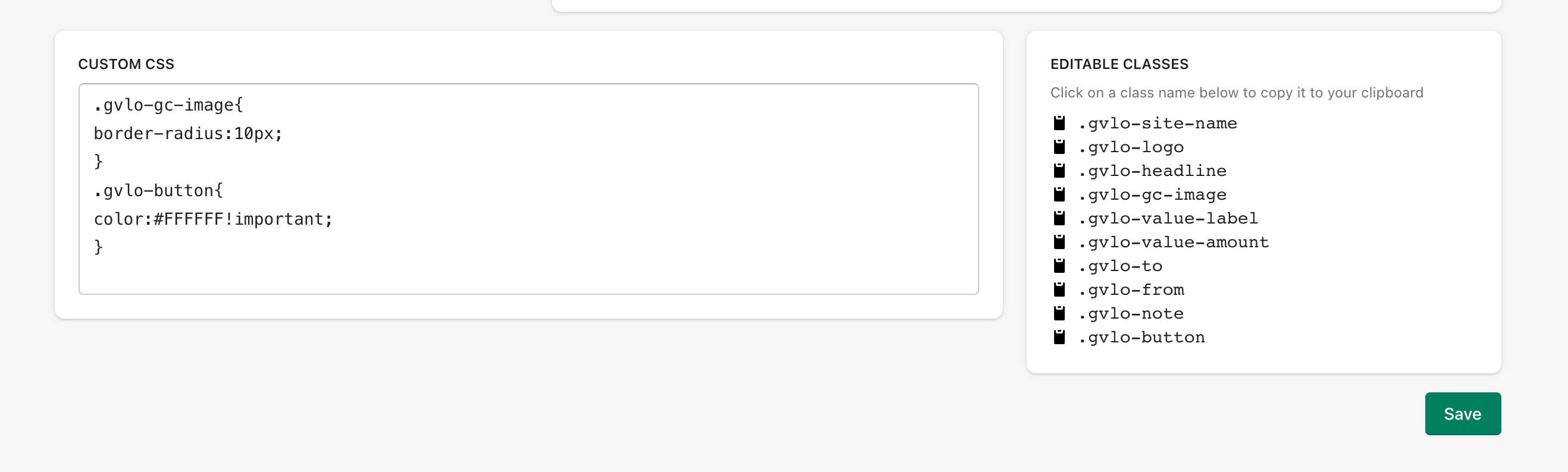 If you need to adjust the styles even further, scroll down until you find the Custom CSS box. Here you can add custom CSS that affect the elements in the email template. You may use the classes in the Editable Classes box as a reference: