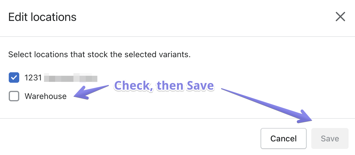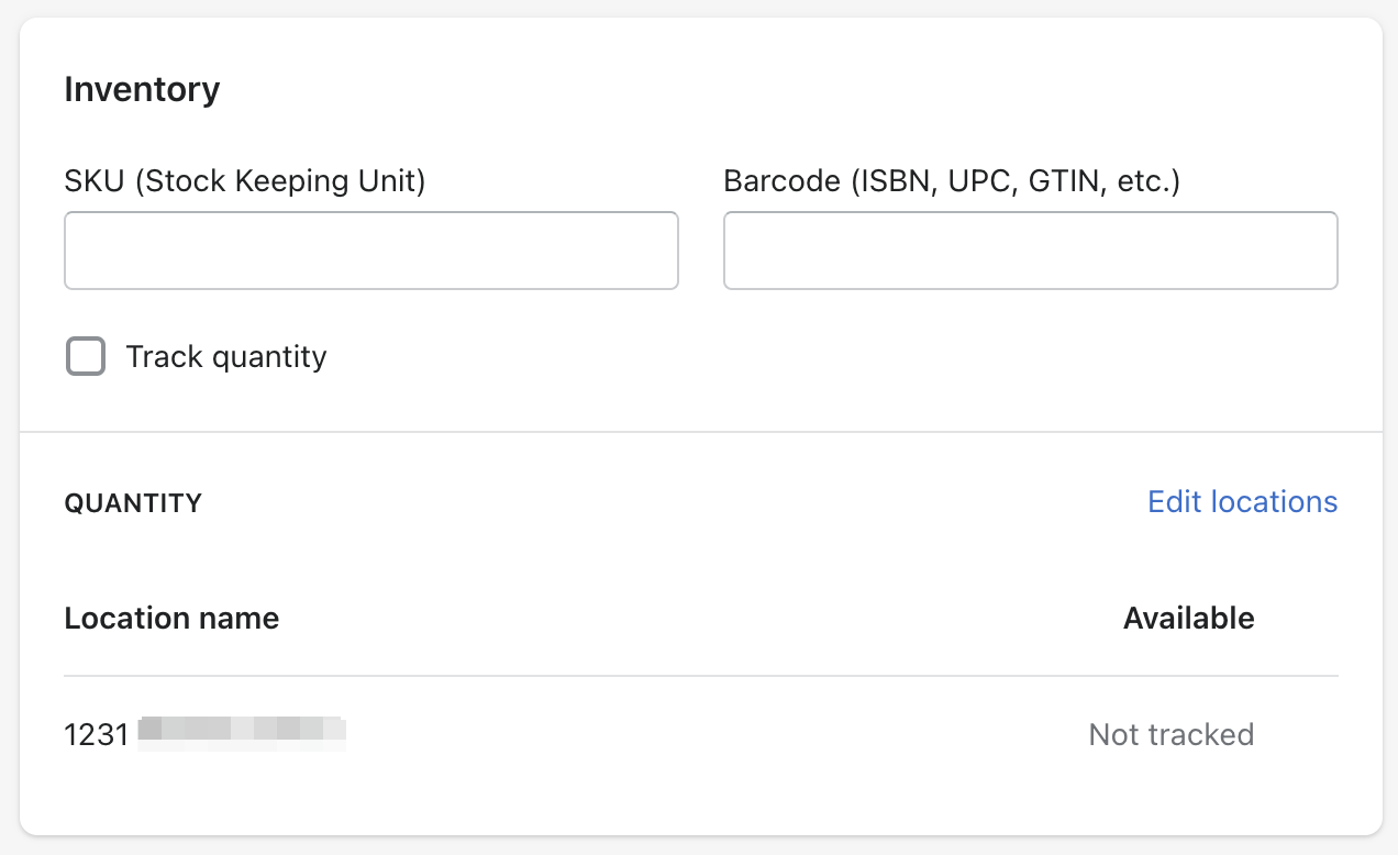 In Shopify, under Products, locate the gift card created by Govalo and navigate into it, then navigate into each of its variants. Scroll down and check the Inventory section for details about the Locations set for the variant: