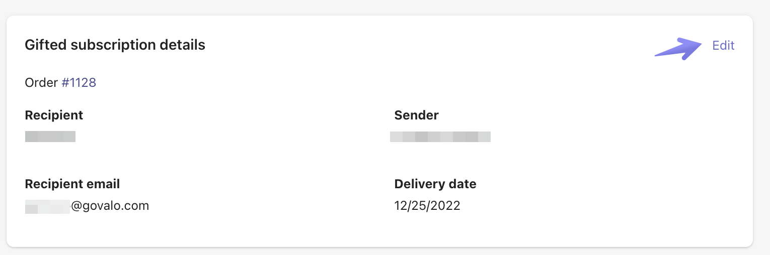 If you need to adjust the recipient's email, click Edit next to the Gifted subscription details. Otherwise, skip to step 5: